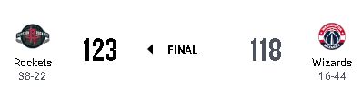 ヒューストン・ロケッツが123-118でワシントン・ウィザーズに勝利した。