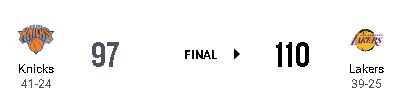 ルカ・ドンチッチが35得点を挙げ、レブロン・ジェームズ不在のLALがNYKに110-97で勝利した。