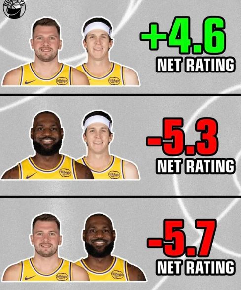 レブロンがまだ優秀かどうかは別として、彼のプラスマイナス指標は悪いし、ドンチッチやARと一緒にコートにいるとボールの回りが悪くなるんだよ。