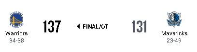 DALも食い下がり試合は延長戦に突入したが、接戦の中でGSWが粘り強さを見せて再逆転した。