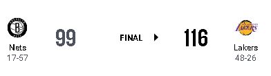 LALは直近12試合で11勝目を挙げ、BKNは10連敗となった。