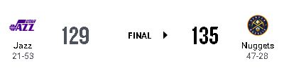 DENが135-129でUTAに逆転勝利した。