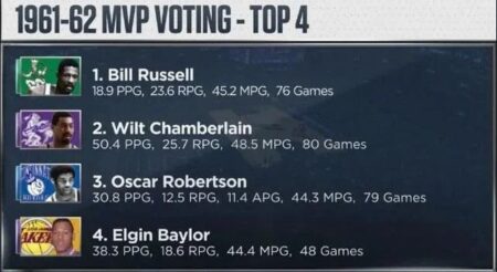 ↑1961-62シーズンには生きていなかったから純粋な疑問なんだけど、ウィルトがあんなスタッツを残したのに、なぜあの年はビルがMVPだったの?