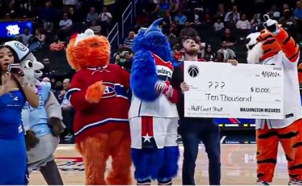 ・シュートは大きく外れたにもかかわらず、マスコットなどが大興奮で駆け寄り、1万ドルの小切手を渡して成功したかのように思い込ませたが、その後リプレイ映像を見せて外れていることをネタばらしした