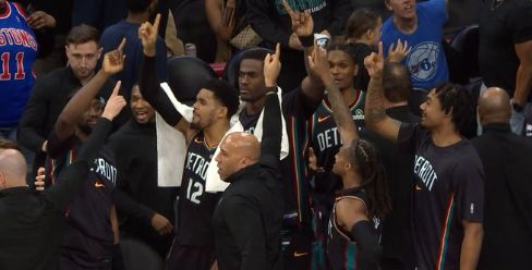 デトロイト・ピストンズのベンチにいた選手たちは、試合の最後に指で「1」を示した。