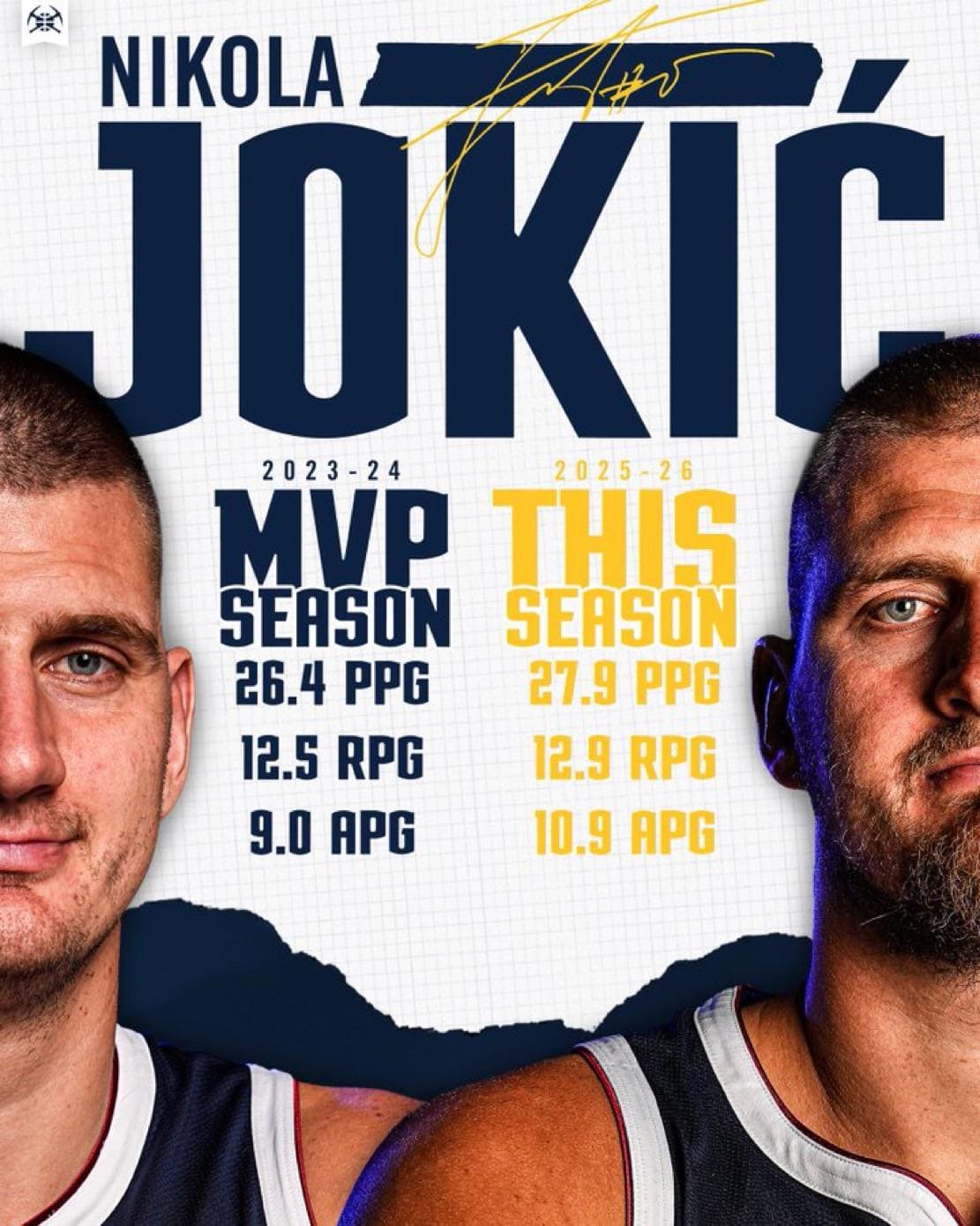 昨年はヨキッチ個人としてはオフェンス4部門でスタッツTOP5入りとかしてるけど