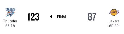 LALは後半の24分間でわずか22得点とオフェンスが完全に停滞し、OKCが圧倒して勝負を決めた。
