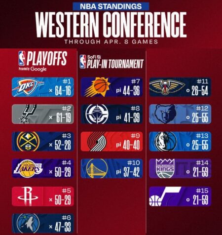 【NBA】OKCとSASは残り試合休養モードで、DENの3位はほぼ確定か?