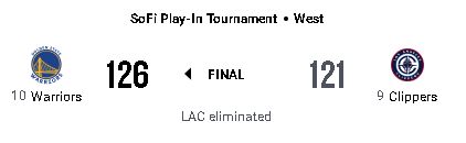 GSWがLACに126-121で勝利し、プレーインを勝ち上がった。