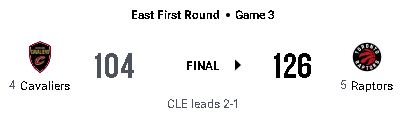 TORが126-104でCLEに勝利し、シリーズの対戦成績を1勝2敗とした。