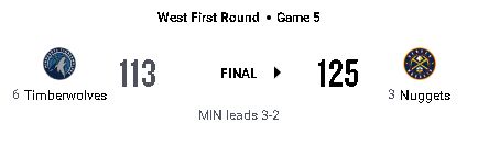 ニコラ・ヨキッチがトリプルダブルを達成し、DENが125-113でMINに勝利して敗退を免れた。