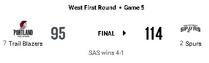 SASが114-95でPORに勝利し、シリーズを4-1で制して準決勝進出を決めた。