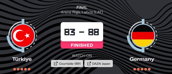 ・ドイツがトルコに88-83で勝利し1993年以来32年ぶりにユーロバスケット優勝を果たした