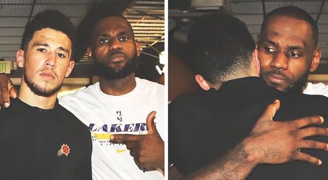 NBA・米国バスケ レブロンとブッカーがなんとも言えない表情で互いの健闘を称える