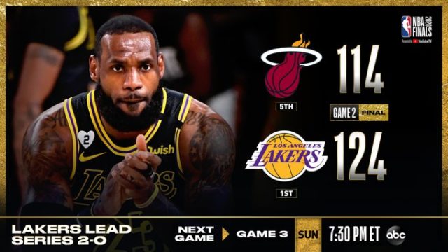 NBA・米国バスケ 【NBAファイナル2020】終始リードを保ったLALが2勝目!MIAはゾーン多様で奮闘するも及ばず