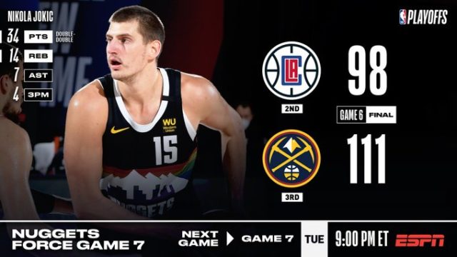 NBA・米国バスケ DENが最大19点差をひっくり返し逆王手!ヨキッチ34点14R
