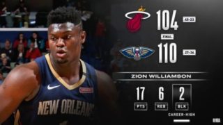 NBA・米国バスケ ザイオンの連続20得点記録は途切れるもNOPがホームでMIAに勝利