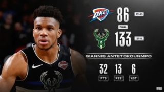NBA・米国バスケ MIL強すぎる!好調OKCに今季最多の47点差をつけて圧勝!