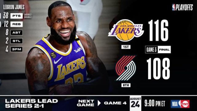 NBA・米国バスケ インサイドを制圧したLALが2勝目!レブロン38点AD29点