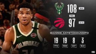 NBA・米国バスケ 東首位攻防戦はヤニス19点止まりも総合力の高さをみせたMILに軍配!今季TOR戦を2勝0敗に