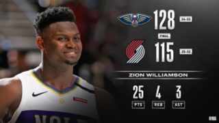 NBA・米国バスケ ザイオン25得点!NOPがプレーオフ争いのライバルPORに快勝