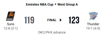 NBA・米国バスケ 【NBA】OKCがPHXとの激戦をものにし11連勝!開幕19勝1敗としカップ戦決勝トーナメントへ