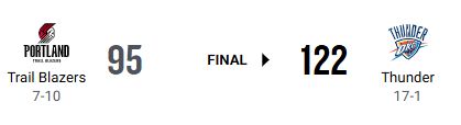 NBA・米国バスケ 【NBA】OKC今季も歴史的なシーズンへ?PORに大勝で借りを返し17勝1敗に